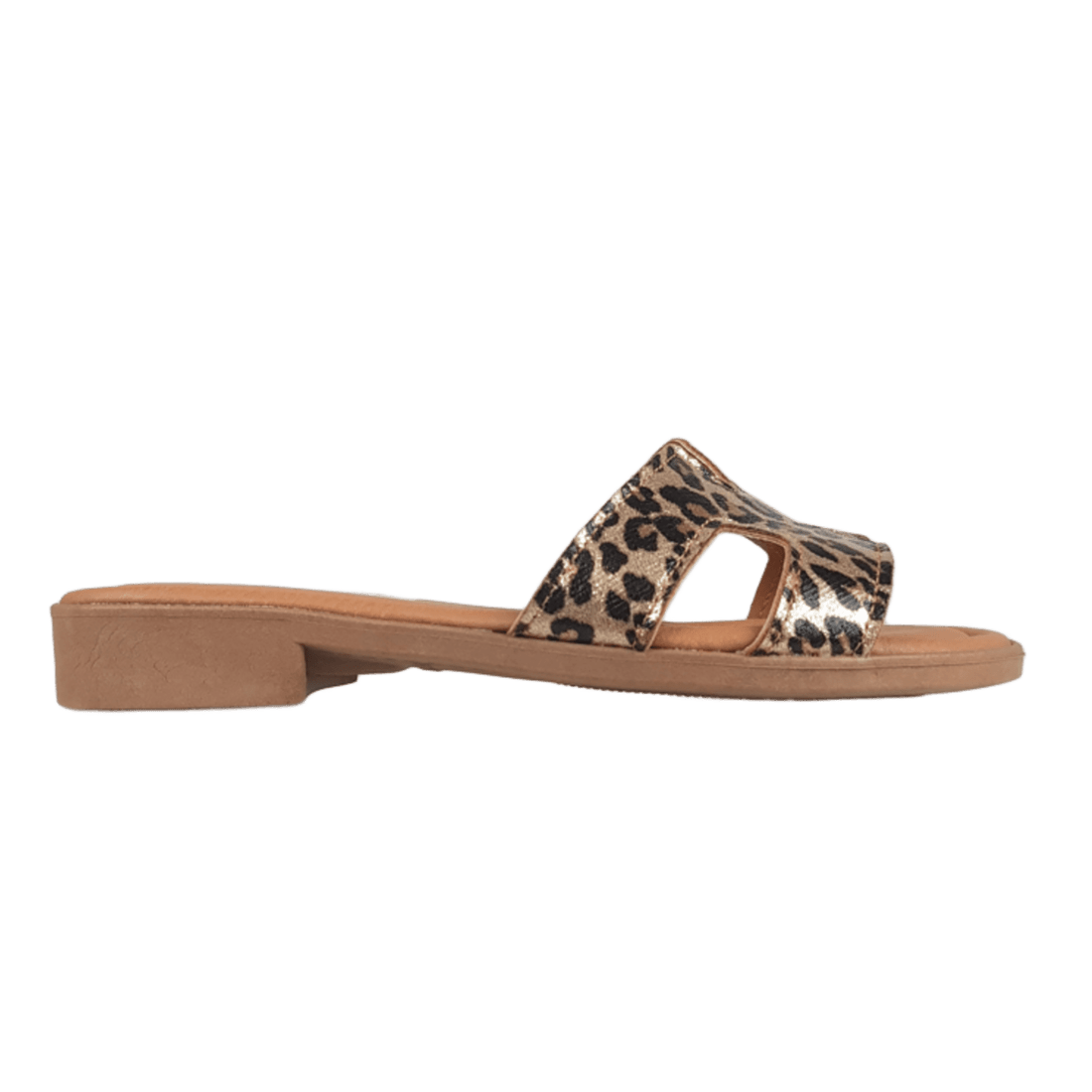 Sandalo da donna stile Hermes di produzione made in Italy che presenta un comodo plantare in memory. La tomaia è in similpelle di colore leopardato. Infine la calzata è regolare.